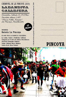 La infaltable BANDITA CALLEJERA estará sonando/bailando al son de la resistencia popular. Estan todos y todas invitadas a esta fiesta callejera. Se realizará el sabado 13 de Diciembre en Av. Recoleta altura 5.600. Partirá en "plaza plablo neruda" a las 19:00hrs.